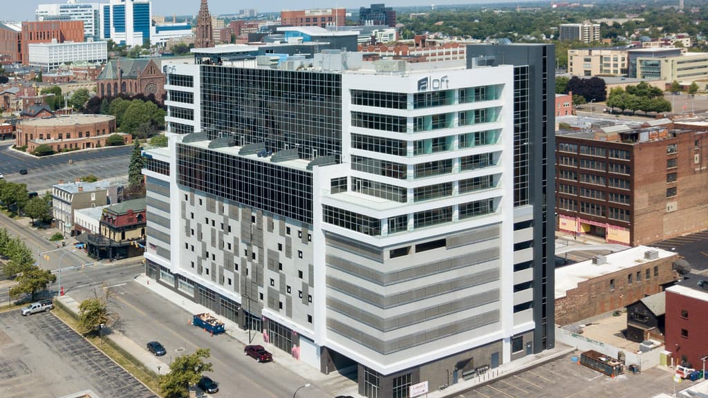 Being one of a kind structure in the Buffalo, NY area, this garage faced unfamiliar design aspects to meet the functional needs. The precast design allowed for the parking to be effectively concealed without the appearance of a parking structure. This mixed-use structure is a, “great way to combine functional parking architecture with other uses.”