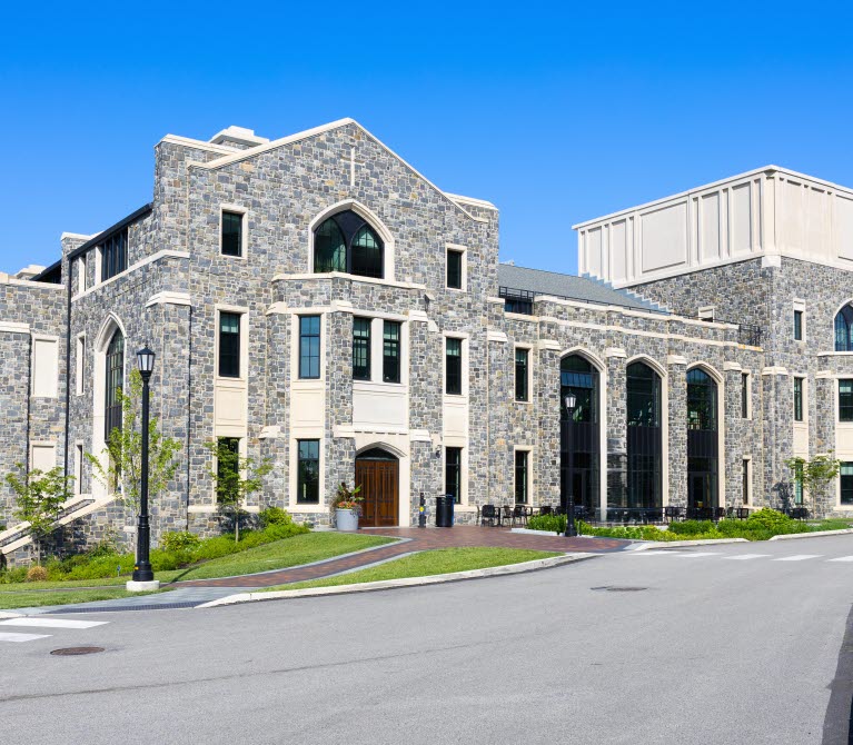 Precast concrete was selected for its aesthetic versatility, ability to accelerate the construction schedule, and adaptability to the site’s unique constraints. At a university known for blending Gothic tradition with modern innovation, precast allowed the design team to preserve the campus’s iconic character while introducing bold, contemporary elements. The façade’s thin veneer stone cladding was fabricated off-site, enabling structural work and site development to progress in parallel. Once the structure was complete, the precast exterior was installed in just eight weeks, minimizing disruption on a site that was already challenged by limited space and complex grading.