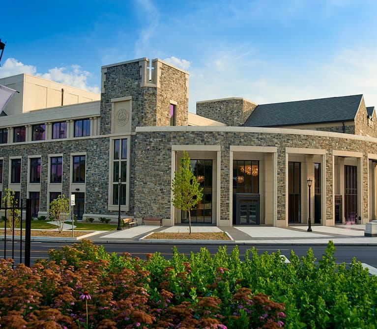 The John and Joan Mullen Center for the Performing Arts is the last in a series of planned projects along Lancaster Avenue. The goal was to create a venue that would give the local community an opportunity to experience new forms of art and culture, as well as a facility where theater students could experience hands-on learning. The Villanova campus is known for its Gothic-style architecture, and the performing arts center’s design complements the traditional style of surrounding structures. Precast concrete panels with plant-installed stone met the aesthetic and functional needs of the university at a lower cost and faster construction time than could have been achieved with a design featuring a traditional stone facade.